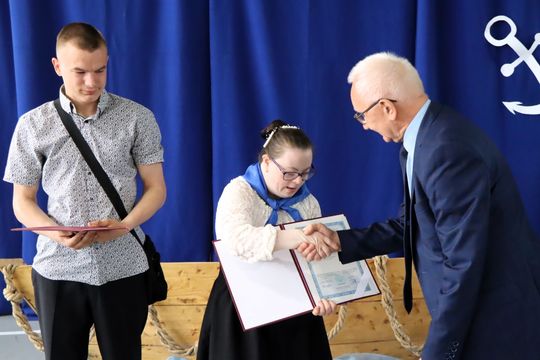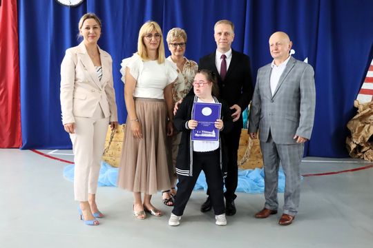 Bartosz Cienkowski – uczeń klasy II Publicznej Szkoły Przysposabiającej do Pracy za wzorową frekwencję na zajęciach szkolnych i zaangażowanie podczas występów w uroczystościach szkolnych