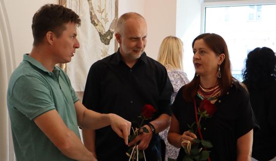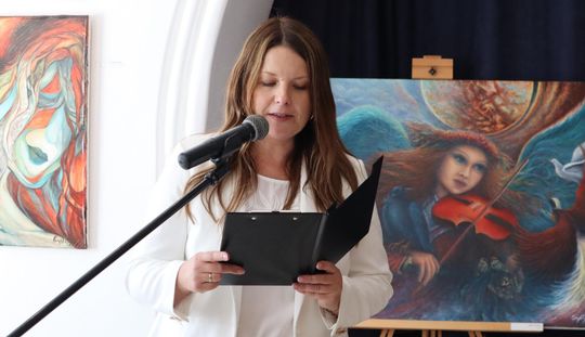 Szczególnie serdecznie witam panią burmistrz Beatę Jóźwiak, która zawsze wspiera lokalną kulturę i działania środowisk twórczych. Witam serdecznie panią Izabelę Sosnowicz-Ptak – wieloletnią dyrektor naszego Miejskiego Centrum Kultury i Sztuki, pomysłodawczynię tej wystawy, dziś występującą w roli artystki prezentującej swoją twórczość. Witam serdecznie wszystkich zaproszonych gości, radnych, dyrektorów jednostek, przedstawicieli pułtuskich mediów, artystów oraz rodziny i przyjaciół artystów.