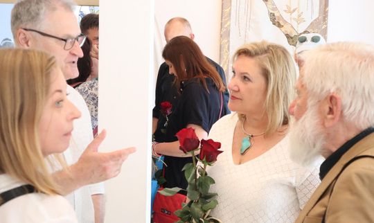 Zwyczajem GALERII MCKiS jest wystąpienie dyrektor CENTRUM ze słowem odnoszącym się i do artystów, i do prezentowanych przez niech prac, i do - zazwyczaj - licznie przybyłych gości. Oto, co 4 lipca powiedziała dyr. Ewelina Wielechowska:
