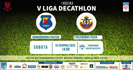 - 14:00 – Mecz piłki nożnej Decathlon V ligi: MLKS Nadnarwianka Pułtusk – Stoczniowiec Płock (stadion miejski, ul. H. Pilejczyka 6).
