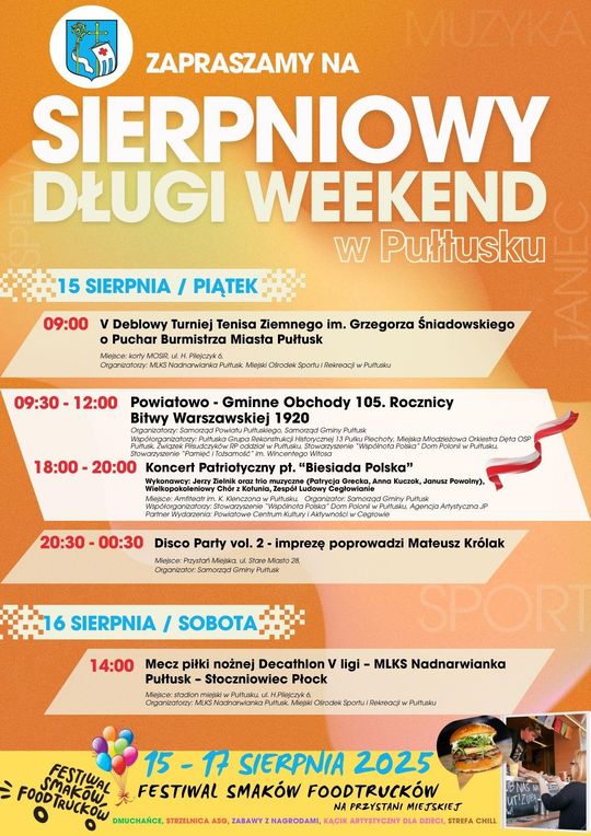 Tegoroczny długi weekend sierpniowy w Pułtusku zapowiada się wyjątkowo intensywnie i różnorodnie.