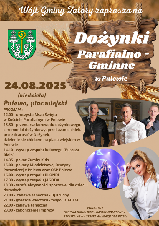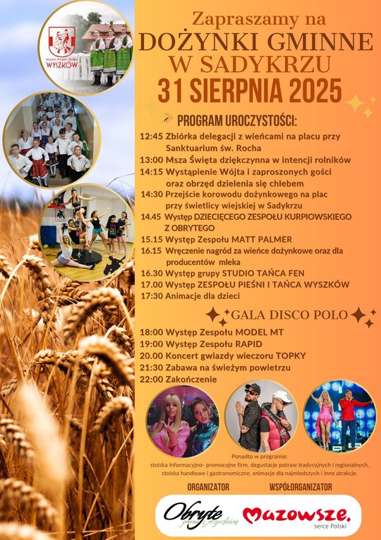 Dożynki gminne w gminach Pułtusk, Gzy, Obryte, Zatory. Jakie atrakcje czekają mieszkańców?