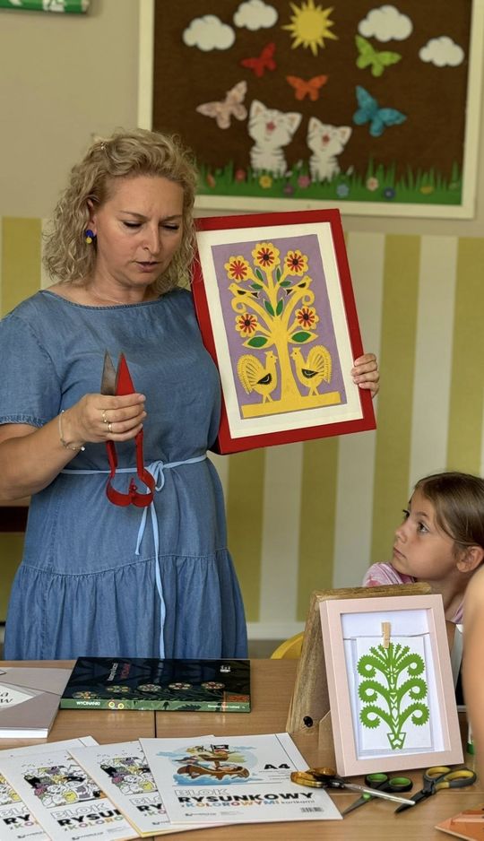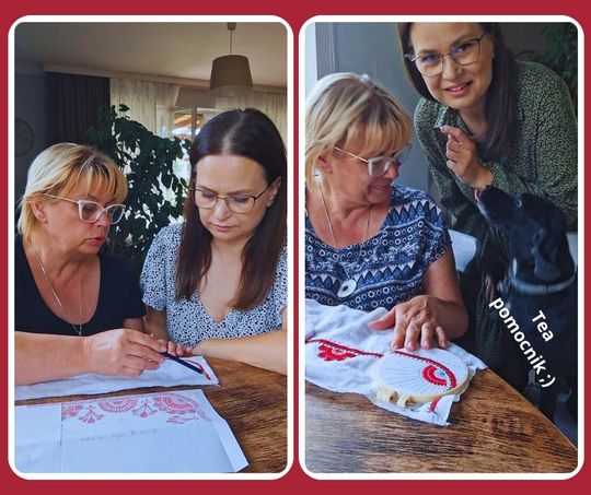 Warsztaty... Dzięki nim odtwarzane jest dziedzictwo Kurpi Białych. I tak KUŹNIA ma już za sobą oklejankę sitowiem i włóczką (pięknie oklejał wydmuszki teść Hali), wpisaną na listę niematerialnego dziedzictwa; haft na płótnie i na tiulu; korony na obrazy; wycinankę oraz pająka.