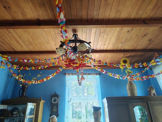 A kiedy Kurpianka używa słowa PAJĄK, to wiadomo jak to, że Gomulicki nazwał naszą Narew BŁĘKITNĄ, że biega o PAJĄKA podsufitowego, ozdobnego, wykonanego z barwnej bibułki (kokardki, pompony) i słomek. Białopuszczańskie gospodynie zawieszały je pośrodku powały na Boże Narodzenie. Tak stroiły izbę (przez cały rok), niosąc gospodarzom dobrobyt, zdrowie, pomyślność w pracach gospodarskich, a kiedy poruszały się samoistnie, to i nawet szczęście.