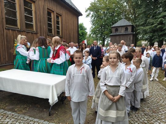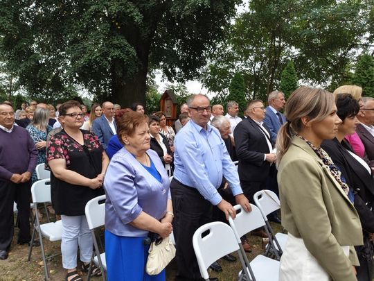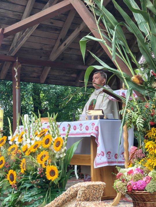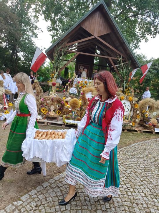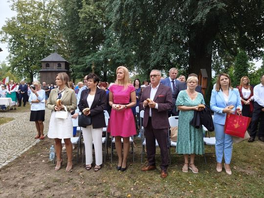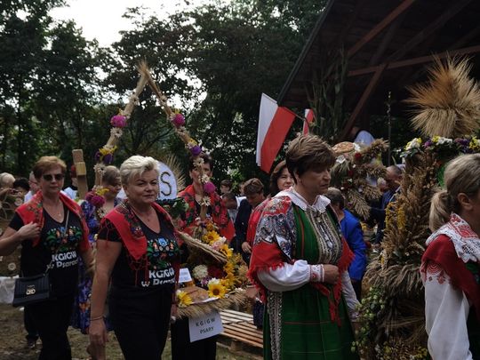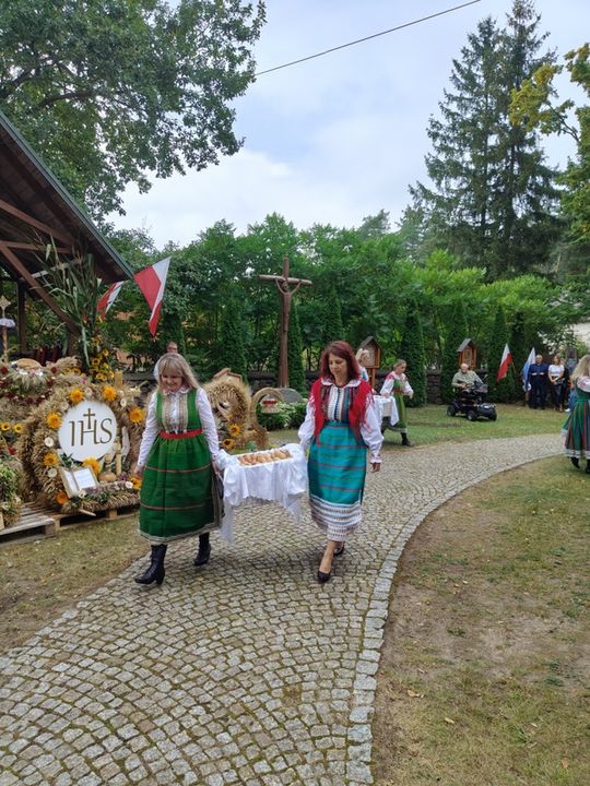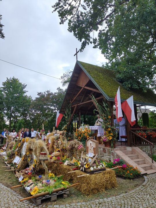 Doskonale przygotowane, bogate w wystrój związany z plonami i przyrodą oraz kunsztownymi wieńcami naznaczonymi tradycją odbywały się przy SANKTUARIUM św. ROCHA, gdzie wystawiono wieńce dożynkowe i gdzie miała miejsce msza dziękczynna w intencji rolników z pięknymi słowami ks. prałata Cezarego Siemińskiego, przy ołtarzu przystrojonymi słonecznikami. Tu też nastąpił podniosły moment dzielenia się chlebem.